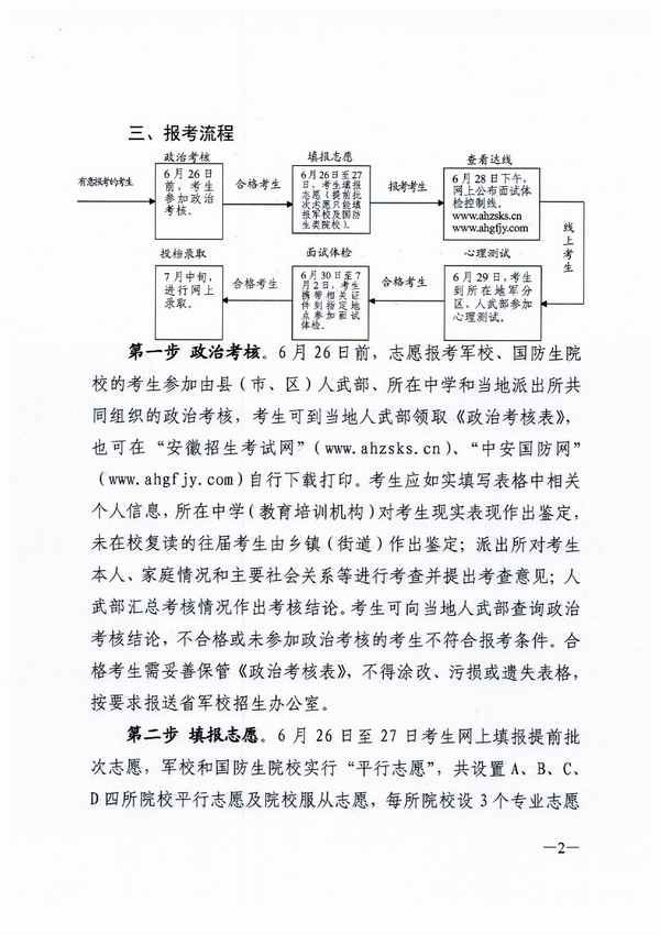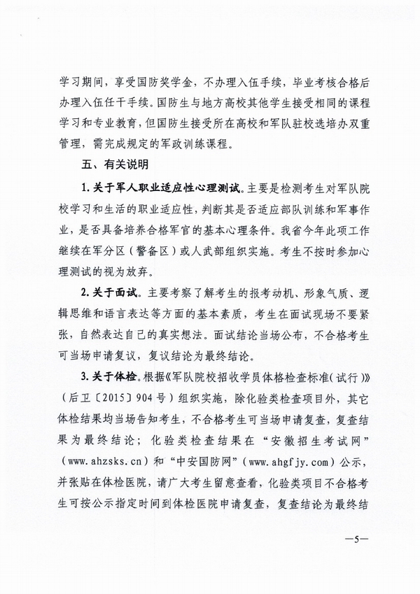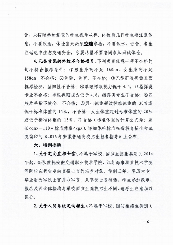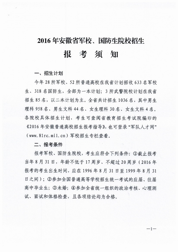 2016年安徽省軍校、國防(fáng)生院校招生報考須(xū)知