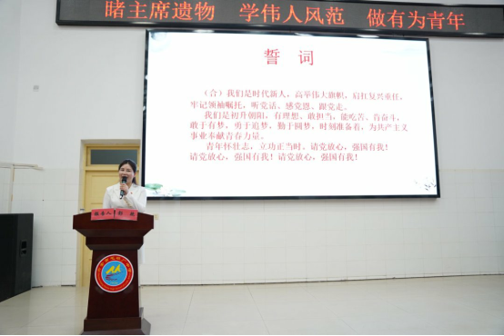 尾聲(shēng)的集體宣誓掀起了(le)報告會的高潮。彭老師勉勵廣大(dà)同學要以偉人為榜樣,從毛主席的光輝事(shì)跡和崇高精神中汲取營養和力量,樹立(lì)遠大誌向,錘煉高尚品格,勤奮學習知識,努力成長為有(yǒu)理想、敢擔當、能吃苦、肯奮鬥的新時代好青年,立誌(zhì)為中華民族(zú)的偉(wěi)大複興貢獻自己的青春和智慧。